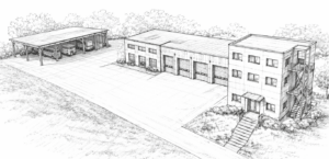 Betriebsgebäude u. LKW-Halle komplett in Holzbauweise